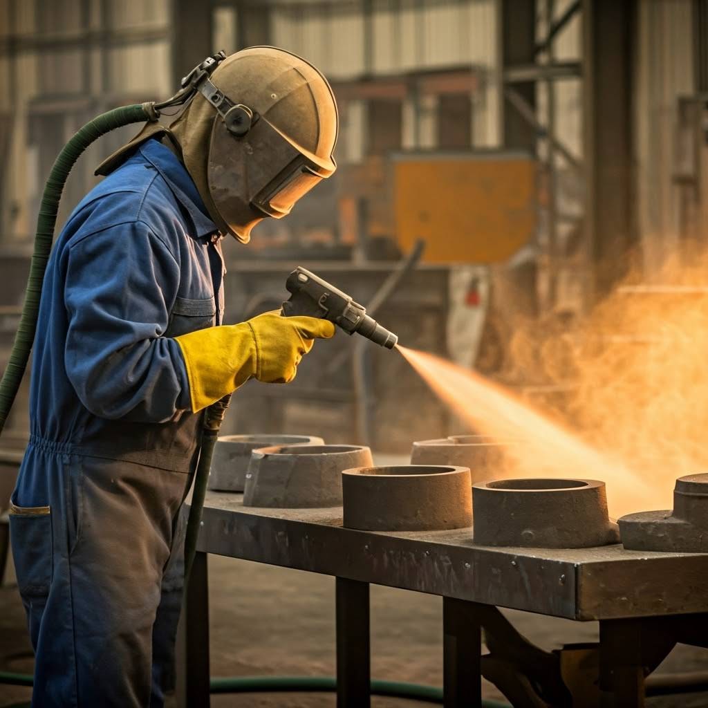- Sablarea cu nisip: Folosește nisip fin ca material abraziv. Este o metodă clasică, eficientă pentru curățarea și pregătirea suprafețelor.